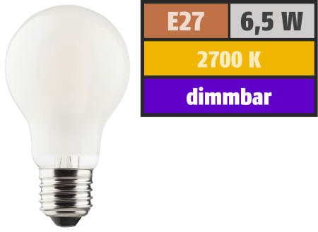 LED Filament Glühlampe, E27, 6,5W, 810lm, 2700K, warmweiß, dimmbar, matt