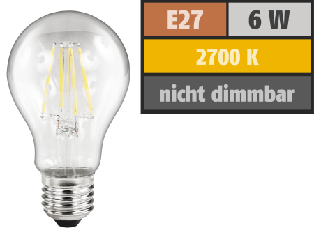 LED Filament Glühlampe, E27, 6W, 810lm, 2700K, warmweiß