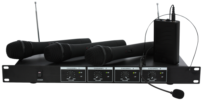 VHF-Funkmikrofon-Set IBIZA VHF4H 4-Kanäle, bis zu 60m Reichweite